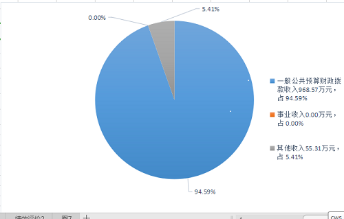 2023年度本年收入合计1023.88万元,其中:一般公共预算财政拨款收入968.57万元,占94.6%;政府性基金预算财政拨款收入0万元,占0%;国有资本经营预算财政拨款收入0万元,占0%;上级补助收入0万元,占0%;事业收入0万元,占0%;经营收入0万元,占0%;附属单位上缴收入0万元,占0%;其他收入55.31万元,占5.4%。