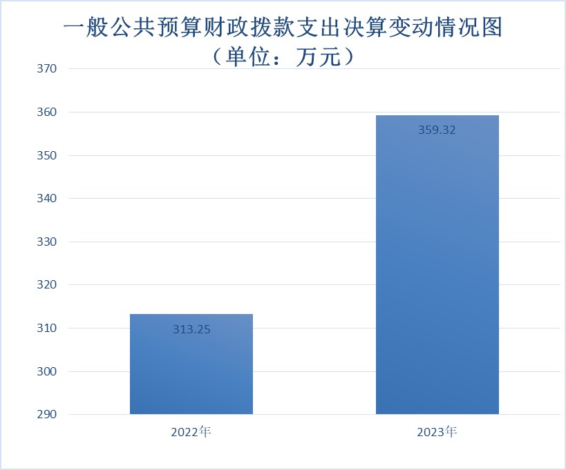 2023年度财政拨款收、支总计均为359.32万元。与2022年度相比,财政拨款收、支总计各增加46.07万元,增长14.71%。主要变动原因一是教师正常晋升及岗位变动工资增加,教师人数增加。