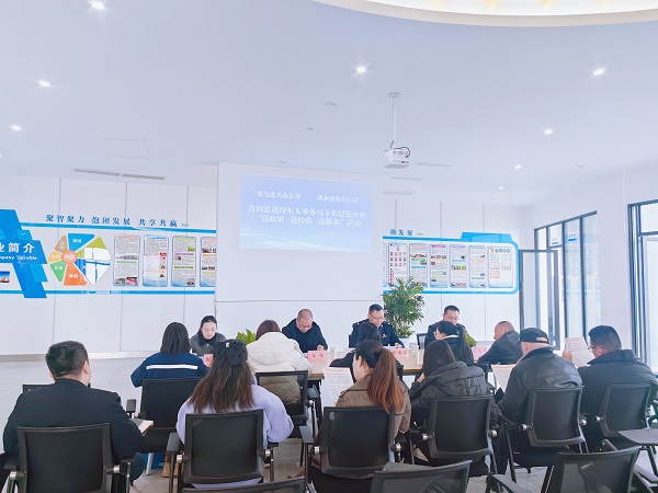 为全面抓实办好“退役军人最期盼的10件事”活动,着力解决我县退役军人创业就业和军创企业急难愁盼问题,切实帮助企业全面知晓吸纳退役士兵就业税费减免政策并如实申报并享受优惠政策。11月28日,“我为老兵办实事 就业创业在行动”青川县退役军人事务局下基层进企业“送政策 送经验 送服务”活动在青川县工业园区中小企业服务中心开展,由青川县退役军人事务局党组副书记、副局长文东主持会议,邀请国家税务总局青川税务局竹园分局副局长李朝贵同志及20余家企业代表参加会议。