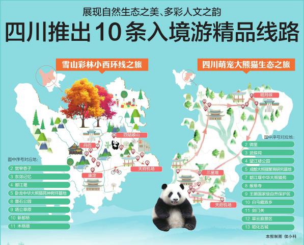 10条线路产品分别是:四川世界遗产经典之旅、四川萌宠大熊猫生态之旅、雪山彩林小西环线之旅、四川冰雪奇缘之旅、四川冬日温暖阳光之旅、行走中国318国道寻觅香格里拉之旅、黑神话悟空四川取景地打卡之旅、烟火成都CITY WALK之旅、“双城记”巴蜀探秘之旅、四川美食之旅。