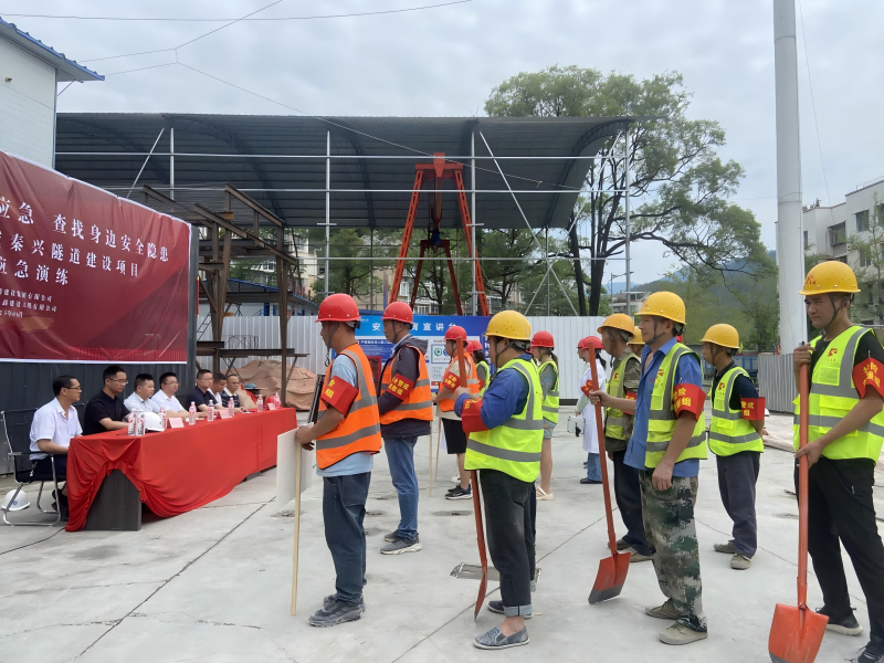 6月17日,由青川县住房和城乡建设局组织的秦兴隧道建设项目2025年“安全生产月”应急演练在项目现场举行。本次演练紧扣“人人讲安全、个个会应急——查找身边安全隐患”年度主题,重点模拟汛期极端恶劣天气下突发险情,全面检验项目应急体系实战效能。