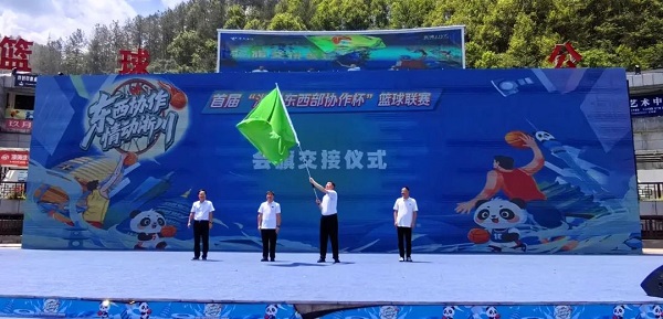 第二届“浙川东西部协作杯”篮球联赛将于明年在浙江省湖州市德清县举办,现场进行会旗交接仪式。广元市体育局党组成员、副局长周荣旭,县领导佘锦、赵利利参加闭幕式。