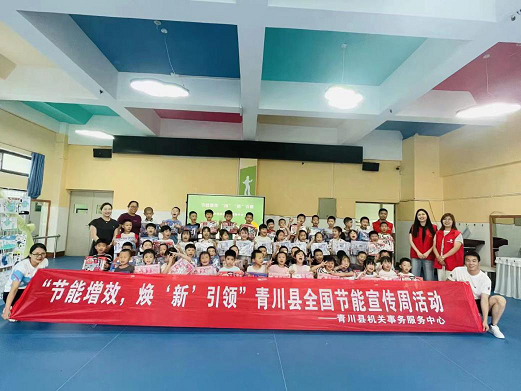 节能进校园,童心筑未来。走进青川竹园镇幼儿园,以“节能画画”“节能小知识问答”等趣味游戏传递节能知识,小朋友参与可领环保文具,以小手牵大手,推进节能宣传工作。