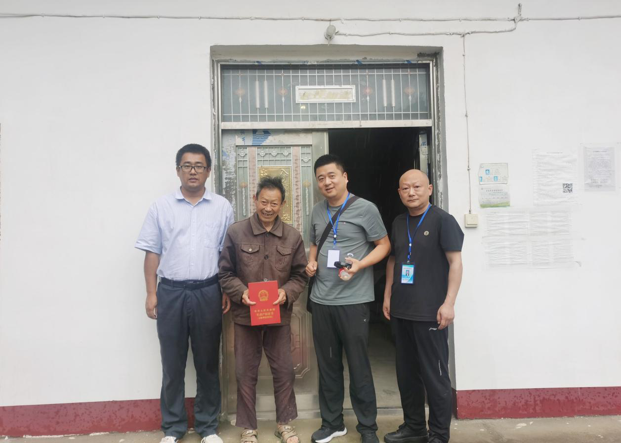 “从办证到领本本,我啥都没管,没出门都把本领到手上了,他们送到我屋头来的”。7月3日,青川县乐安镇向阳村村民王怀益与其余15户村民在家门口领到了自己的《不动产权证书(土地承包经营权)》。这是青川县自然资源局成立以来,以上门服务的方式,颁发的第一批第二轮土地承包到期后再延长三十年不动产登记证书。