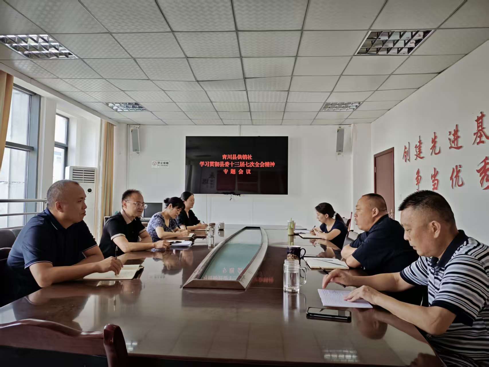 8月1日上午,青川县供销社组织召开干部职工会议,专题传达学习青川县第十三届委员会第七次全体会议精神,并研究供销系统贯彻落实举措。会议由党组书记、理事会主任柳绪涛主持,全体干部职工参会。