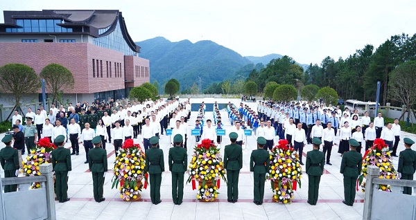 秋日的英烈纪念园庄严肃穆,青松苍翠挺立,革命烈士纪念碑巍然矗立。县四大班子领导、各界代表200余人面向烈士纪念碑,列队肃立。