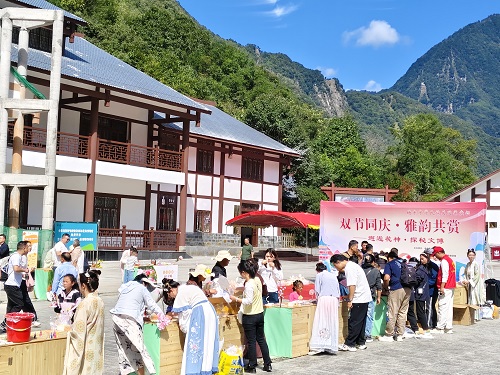 为进一步铸牢中华民族共同体意识,不断弘扬中华优秀传统文化,充分发挥博物馆的社会教育职能,10月2日,青川县流动博物馆走进唐家河景区,以“双节同庆·雅韵共赏——邂逅花神·探秘文博”为主题,将传统文化与节日氛围深度融合,为游客带来了一场沉浸式文化体验。本次活动由县委宣传部、县委统战部、县文广体旅局、团县委主办,县博物馆和县新时代文明实践中心承办。