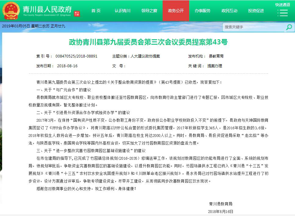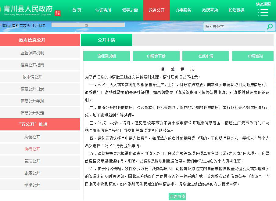 (二)做好依申请公开。进一步建立健全依申请公开信息接收、登记、办理、答复等工作流程,确保信息公开申请渠道畅通,内部运转高效。依申请公开流程清晰,说明具体,申请及查询渠道明确。2018年度我县未收到依申请公开政府信息要求,收到市政府转办申请1条,我县认真组织,高度重视,及时予以回复。