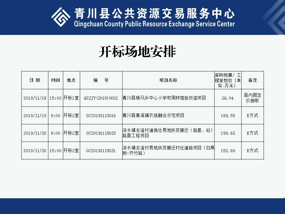 2019年11月18日-22日开标场地安排