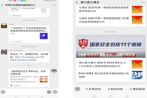 “微青川”“法治青川”“平安青川”等各普法责任单位官方微信公众号、微博、抖音号全面发布国家安全教育主题普法刊文20余条。充分利用“一村一法律顾问”微信群、村社区群众联络群等掌上载体,将100余条国家安全法律法规推送至200余个微信群,让更多群众了解什么是国家安全日,个人该如何维护国家安全,做到普法全覆盖。通过移动运营商短信平台,发布宣传信息2000余条。通过在法治驿站“云课堂”录制生动典型的案例分享、图文并茂的知识普及、生动活泼的视频展示等形式,广泛开展宣传,形成“掌上”学习国家安全知识的浓厚氛围。