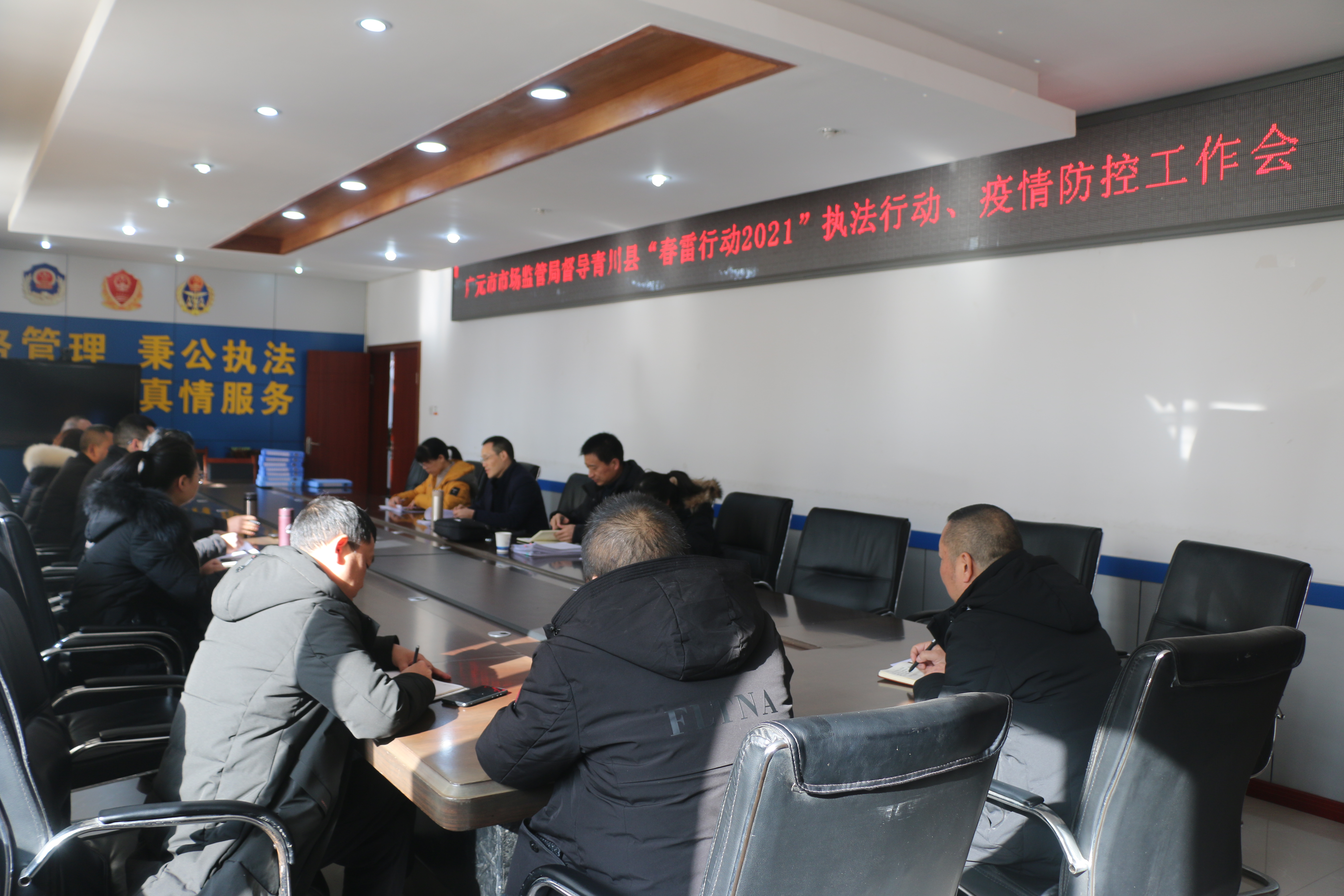 1月28日,广元市市场监管局副局长李代根带领市局相关科室负责人督导青川县“春雷行动2021”执法行动与疫情防控工作。