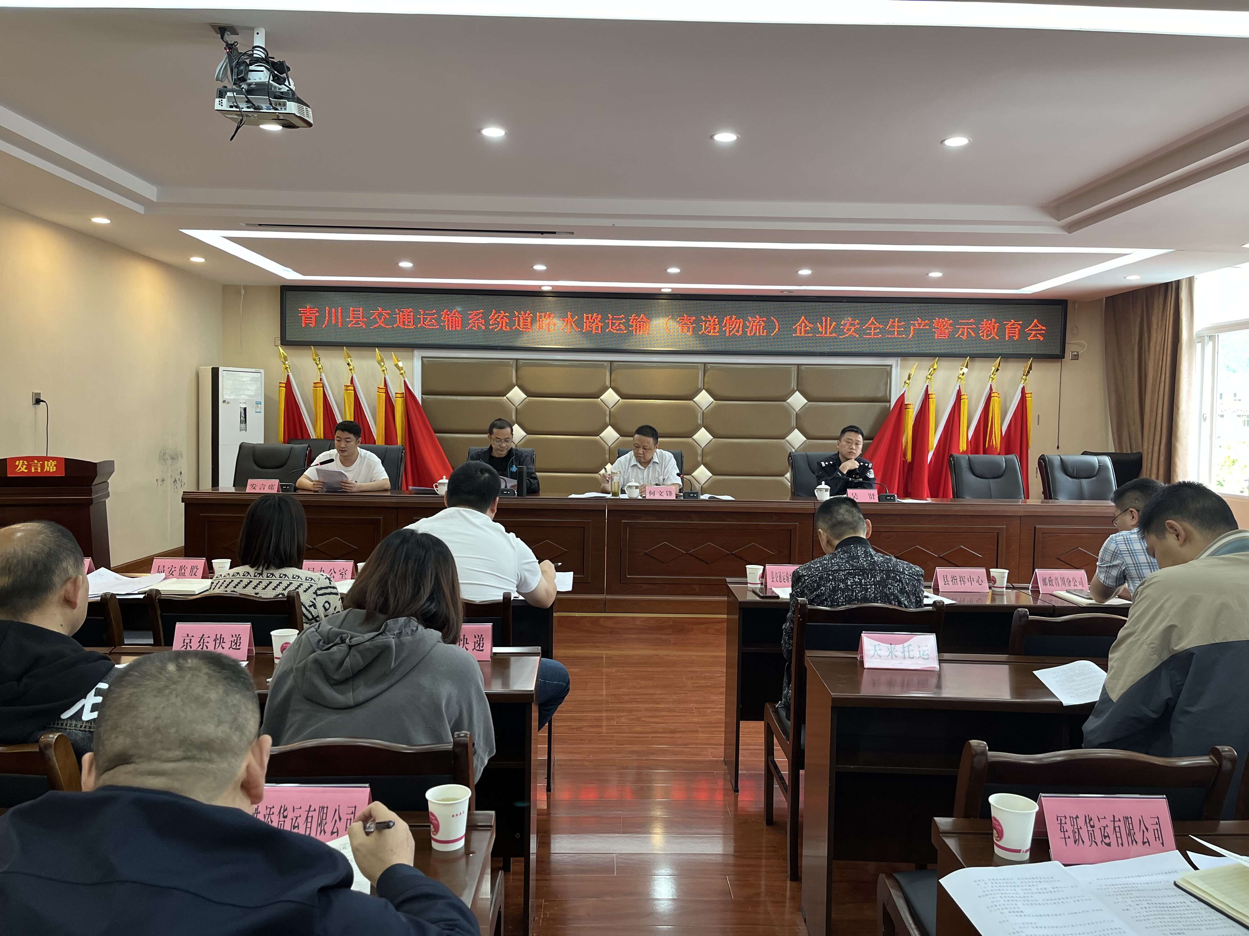 9月25日,青川县道路水路运输(寄递物流)企业安全生产专题会议在广运集团青川公司会议室召开,会议由交通运输局党组成员、副局长何文锋主持。县道安办副主任、公安局交警大队大队长吴贤及县交通运输综合行政执法大队、县交通运输综合服务中心、县交通运输局局机关相关股室责任人、相关客货运输和快递企业责任人参加了会议。