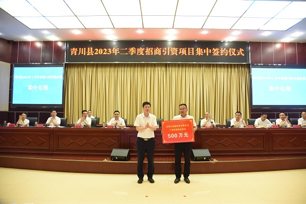 签约仪式上,集中展示签约二季度招商引资项目,集中兑现了2023年招商引资项目优惠政策,并安排部署了下一步招商引资工作。据了解,青川县二季度累计签约项目达30个,总投资38.31亿元,项目涉及工业、农业、生态康养旅游、商贸物流等多个领域。