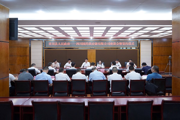 何巧彬简要介绍了青川县现代中药产业集群发展规划和川陕甘产业运营中心发展规划。他表示,四川国药将依托青川县优良的产业发展基底、良好的政策环境、科学的产业发展规划、强大的组织保障,结合青川县在地资源及中药材2030产业发展目标,以“一基地一园一供应链”为核心模式,全力推动青川县现代中药产业集群建设落地,打造川陕甘中药材产业运营中心,培育县域经济发展新的增长级,为青川经济社会的繁荣发展贡献四川国药力量。