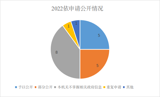 (二)依申请公开情况。我县始终坚持依法依规开展政府信息依申请公开工作,严格做好政府信息依申请公开申请登记、审核、办理、归档等各项工作,印发《青川县德赢VWIN办公室政府信息公开申请答复文书参考格式》,规范依申请公开答复格式,妥善回应群众诉求,不断提升政府信息公开工作水平。全年办理政府信息公开申请20件,其中予以公开5件,部分公开5件,本机关不掌握相关政府信息8件,重复申请1件,其他情况1件,按期回复率100%。