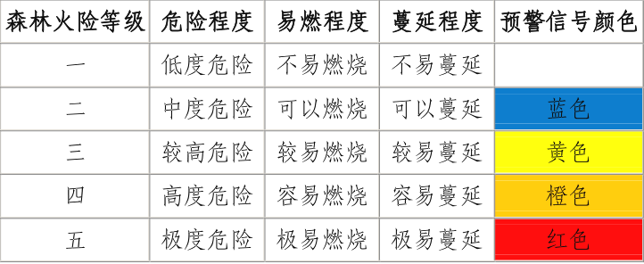 按照受害森林面积、伤亡人数,森林火灾分为一般森林火灾、较大森林火灾、重大森林火灾和特别重大森林火灾4个等级,具体分级标准按照有关法律法规和规定执行。
