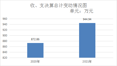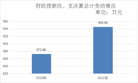 2021年度收、支总计944.94万元。与2020年相比,收、支总计各增加72.08万元,增长8.26%。主要变动原因是人员增加。