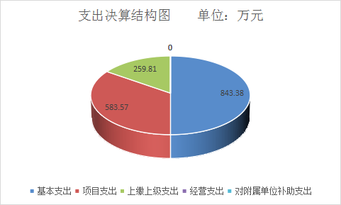2021年本年支出合计843.38万元,其中:基本支出583.57万元,占69.19%;项目支出259.81万元,占30.8%;上缴上级支出0.00万元,占0.00%;经营支出0.00万元,占0.00%;对附属单位补助支出0.00万元,占0.00%。