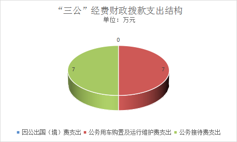2021年“三公”经费财政拨款支出决算中,因公出国(境)费支出决算0.00万元,占0.00%;公务用车购置及运行维护费支出决算7万元,占50%;公务接待费支出决算7万元,占50%。具体情况如下:
