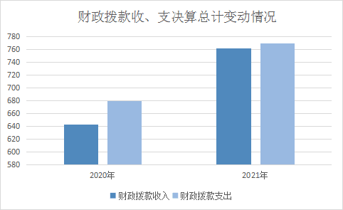 2021年财政拨款收、支总计761.51万元、769.29万元。与2020年相比,财政拨款收、支总计各增加117.8万元、89.47万元,增长18.3%、13.09%。主要变动原因是人员和项目增加,导致收入和支出增加。