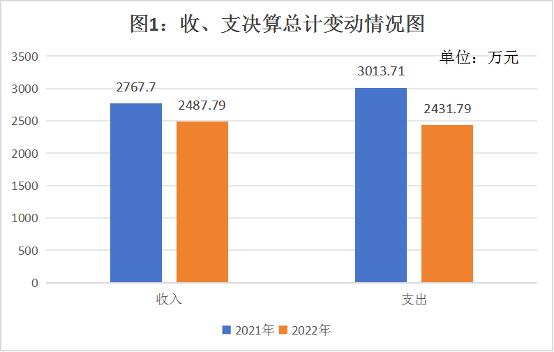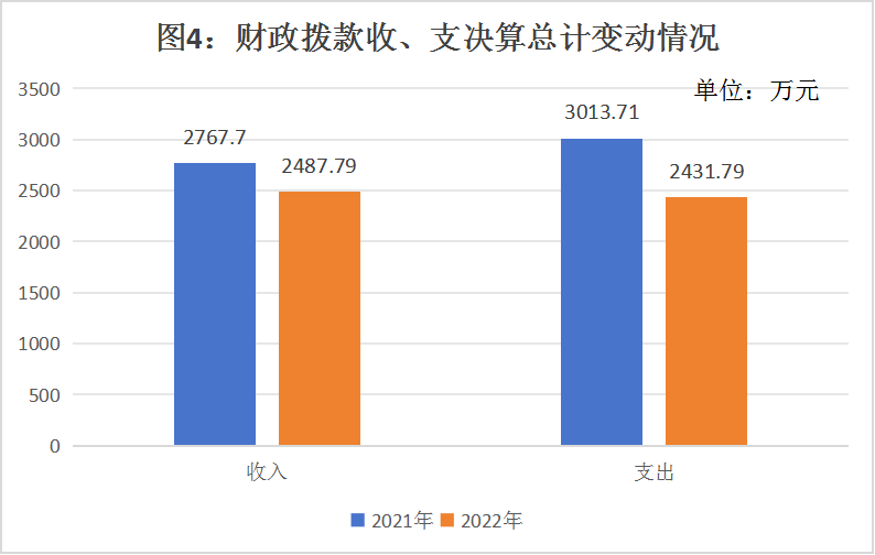 2022年财政拨款收、支总计4919.58万元。与2021年相比,财政拨款收、支总计减少861.83万元,减少19.91%。主要变动原因是2022年我单位编制内实有人数减少,导致人员基本支出及日常事务公用支出收支减少。