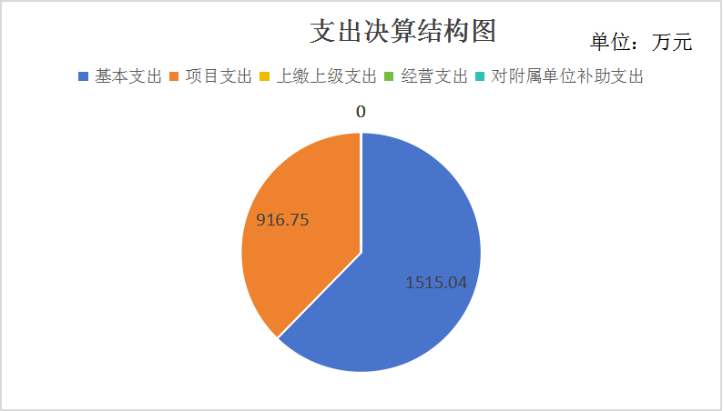 2022年本年支出合计2431.79万元,其中:基本支出1515.04万元,占62.30%;项目支出916.75万元,占37.7%;上缴上级支出0万元,占0%;经营支出0万元,占0%;对附属单位补助支出0万元,占0%。