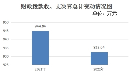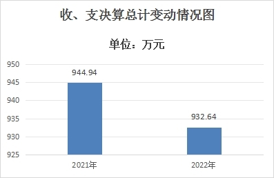 2022年度收、支总计932.64万元。与2021年相比,收、支总计各减少12.3万元,下降1.3%。主要变动原因是人员工资减少。