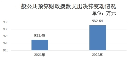 2022年一般公共预算财政拨款支出932.64万元,占本年支出合计的100%。与2021年相比,一般公共预算财政拨款支出减少12.3万元,下降1.3%。主要变动原因是人员工资减少。