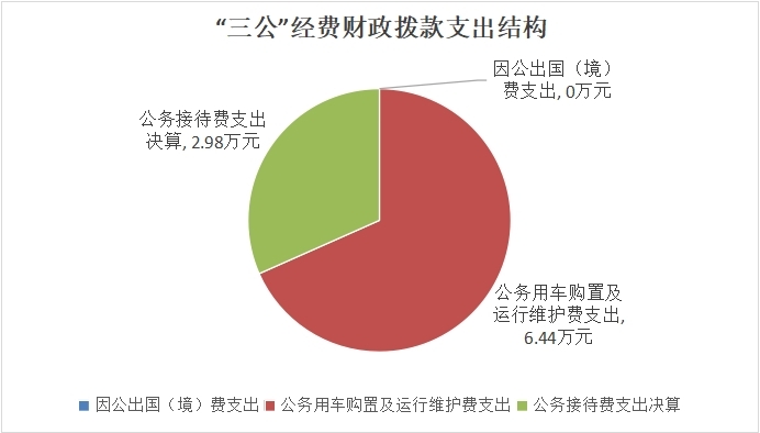 2022年“三公”经费财政拨款支出决算中,因公出国(境)费支出决算0万元,占0%;公务用车购置及运行维护费支出决算6.44万元,占68.36%;公务接待费支出决算2.98万元,占31.64%。具体情况如下: