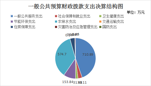 2022年一般公共预算财政拨款支出1593.05万元,主要用于以下方面:一般公共服务支出710.89万元,占44.62%;国防支出1.46万元,占0.09%;社会保障和就业支出53.11万元,占3.33%;卫生健康支出31.48万元,占1.98%;节能环保支出153.84万元,占9.66%;农林水支出574.7万元,占36.08%;交通运输支出0.14万元,占0.01%;住房保障支出59.36万元,占3.73%;灾害防治及应急管理支出8.07万元,占0.51%。