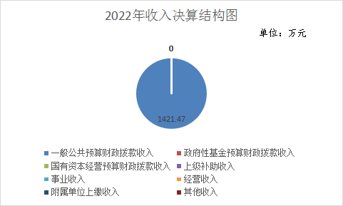 2022年本年收入合计1421.47万元,其中:一般公共预算财政拨款收入1421.47万元,占100%;政府性基金预算财政拨款收入0.00万元,占0.00%;国有资本经营预算财政拨款收入0.00万元,占0.00%;上级补助收入0.00万元,占0.00%;事业收入0.00万元,占0.00%;经营收入0.00万元,占0.00%;附属单位上缴收入0.00万元,占0.00%;其他收入0.00万元,占0.00%。
