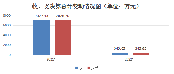 2022年度收入总计345.65万元,支出总计345.65万元。与2021年相比,收入总计减少6681.78万元,下降95.08%,支出总计减少6682.61万元,下降95.08%。主要变动原因是2021年存在财政偿还失地农民养老保险历年欠费项目,金额为6921.39万元,2022年无此项目。
