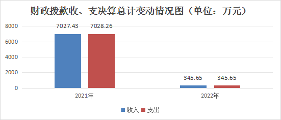 2022年财政拨款收入总计345.65万元,支出总计345.65万元。与2021年相比,财政拨款收入总计减少6681.78万元,下降95.08%,财政拨款支出总计减少6682.61万元,下降95.08%。主要变动原因是2021年存在财政偿还失地农民养老保险历年欠费项目,金额为6921.39万元,2022年无此项目。