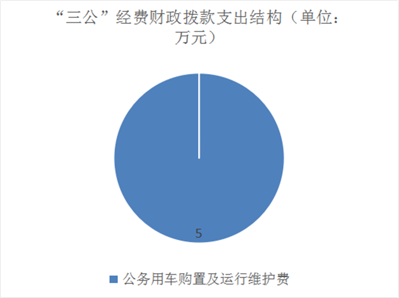 2022年“三公”经费财政拨款支出决算中,因公出国(境)费支出决算0万元,年初未安排预算;公务用车购置及运行维护费支出决算5万元,占100%;公务接待费支出决算0万元,年初未安排预算。具体情况如下: