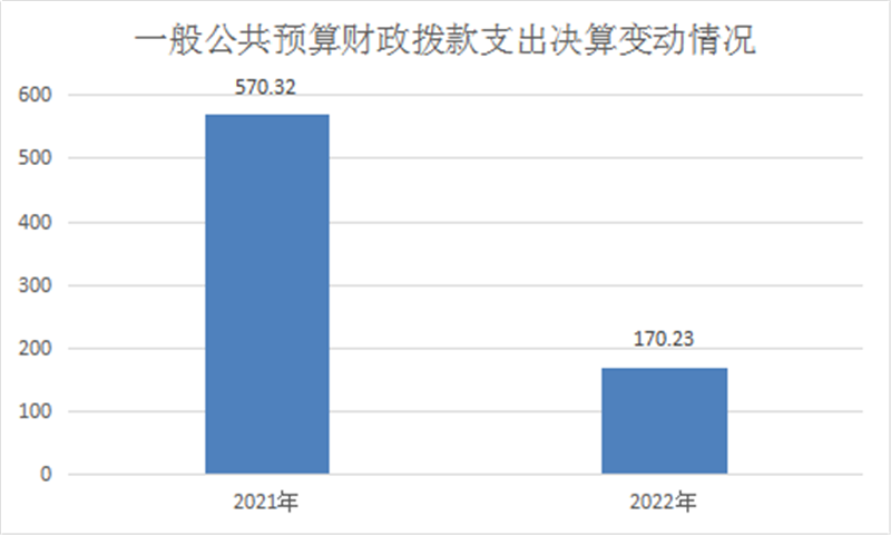 2022年一般公共预算财政拨款支出170.23万元,占本年支出合计的100%。与2021年相比,一般公共预算财政拨款支出减少400.09万元,下降64.75%。主要变动原因是民辅警工作经费及公用业务经费减少。