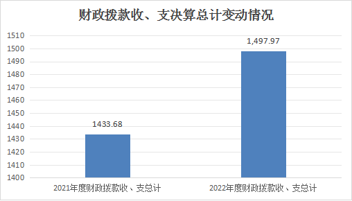 2022年度收、支总计1,497.97万元。与2021年相比,收、支总计各增加64.29万元,增长4.5%。主要变动原因是人员调资,人员类经费支出增加。