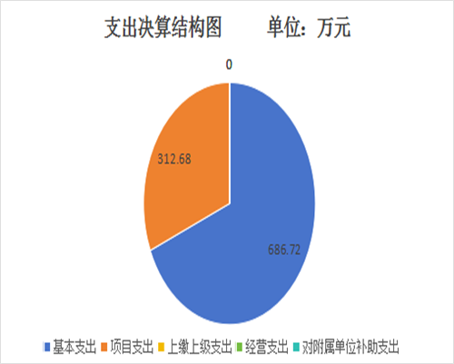 2022年本年支出合计999.39万元,其中:基本支出686.72万元,占68.71%;项目支出312.68万元,占31.29%;上缴上级支出0万元,占0.00%;经营支出0万元,占0.00%;对附属单位补助支出0万元,占0.00%。