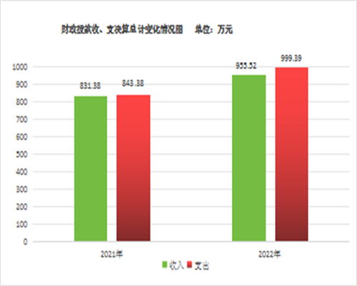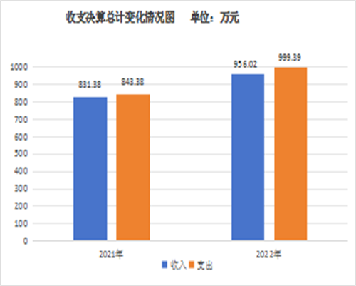 2022年度收入总计956.02万元、支出总计999.39万元。与2021年相比,收入总计增加124.64万元,增长14.99%、支出总计增加156.01万元,增长18.50%。主要变动原因是招考录用在编人员增加,导致人员基本支出及日常事务公用支出增加。