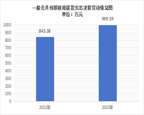 2022年一般公共预算财政拨款支出999.39万元,占本年支出合计的100%。与2021年相比,一般公共预算财政拨款支出增加156.01万元,增长18.50%。主要变动原因是招考录用在编人员增加,导致人员类开支增多。