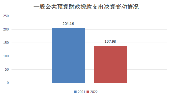 2022年一般公共预算财政拨款支出137.98万元,占本年支出合计的100%。与2021年相比,一般公共预算财政拨款支出减少66.18万元,下降32.41%。主要变动原因是项目减少。