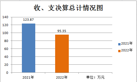 2022年度收入95.35万元、支出95.35万元。与2021年收入123.87万元、支出123.87万元相比,收入减少28.52万元、支出减少28.52万元。主要变动原因是人员减少。