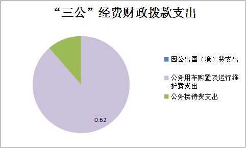 2022年“三公”经费财政拨款支出决算中,因公出国(境)费支出决算0元,占0;公务用车购置及运行维护费支出决算0.62万元,22.3%,公务接待费支出决算0.08万元,占4%。具体情况如下: