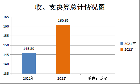 2022年财政拨款收入160.69万元、支160.69万元。财政拨款收入与2021年相比增加14.8万元。增加10.14%。财政拨款支与21年相比增加10.9万元。增加7.28%。主要变动原因是职工工资增加和项目增加。