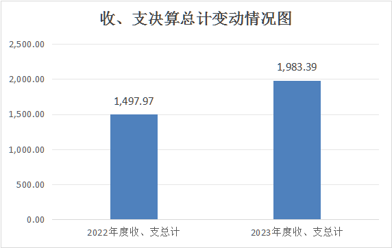 2023年度收、支总计均为1,983.39万元。与2022年度相比,收、支总计各增加485.42万元,增长32.41%。主要变动原因是新进人员、人员调资追加,项目增加,项目资金支出增加。
