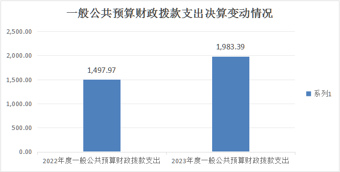 2023年度一般公共预算财政拨款支出1,983.39万元,占本年支出合计的100%。与2022年度相比,一般公共预算财政拨款支出增加485.42万元,增长32.41%。主要变动原因是新进人员、人员调资追加,项目增加,项目资金支出增加。
