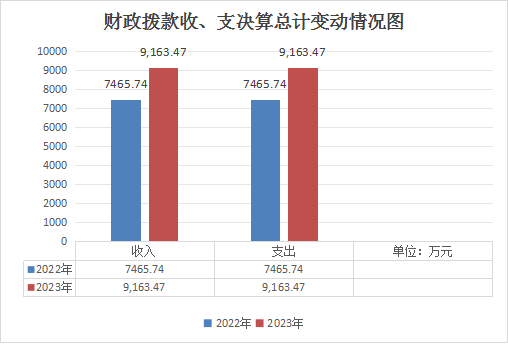 2023年度财政拨款收、支总计均为9163.47万元。与2022年度相比,财政拨款收、支总计各增加1697.73万元,增长23%。主要变动原因是项目资金增加。