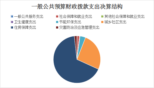 2023年度一般公共预算财政拨款支出8413.94万元,主要用于以下方面:一般公共服务支出14.12万元,占0.17%;社会保障和就业支出132.16万元,占1.57%;其他社会保障和就业支出2.72万元,占0.03%;卫生健康支出31.17万元,占0.37%;节能环保支出322.22万元,占3.83%;城乡社区支出2174.58万元,占25.84%;住房保障支出5585.64万元,占66.39%;灾害防治及应急管理支出154.05万元,占1.83%。