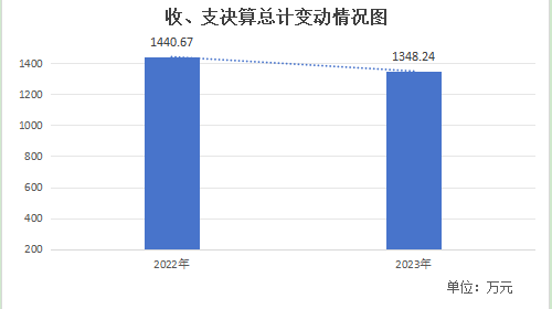2023年度收、支总计均为1348.24万元。与2022年度相比,收、支总计各减少92.43万元,下降6.86%。主要变动原因是人员经费减少,项目经费减少。
