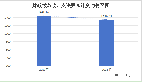 2023年度财政拨款收、支总计均为1348.24万元。与2022年度相比,财政拨款收、支总计各减少92.43万元,下降6.86%。主要变动原因是人员经费支出减少,项目支出减少。