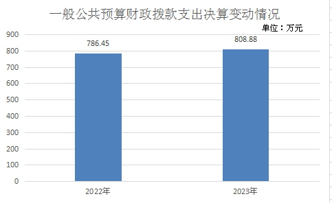 2023年度一般公共预算财政拨款支出808.88万元,占本年支出合计的100%。与2022年度相比,一般公共预算财政拨款支出增加22.43万元,增长2.9%。主要变动原因是我单位编制内实有人数增加,导致人员基本支出及日常事务费用支出增加。